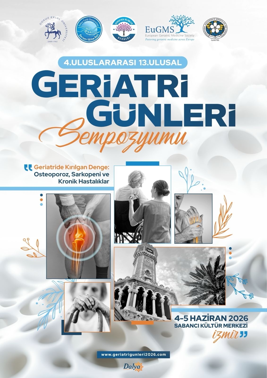 The 4th International and 13th National Geriatrics Days are scheduled to take place at Dokuz Eylül University Sabanci Cultural Centre in Izmir on 4-5 June 2026. It is with great pleasure that we extend a cordial welcome to esteemed scientists from our nation and from across the globe. These distinguished individuals have been recognized for their exceptional scientific accomplishments within their respective domains. We are honored to host them at our symposium. For oral presentations that are deemed suitable by the scientific committee, both in-person and online presentation options will be available, depending on the preferences of the conference participants. Subsequent to the symposium, the oral presentations will be published in the conference proceedings.